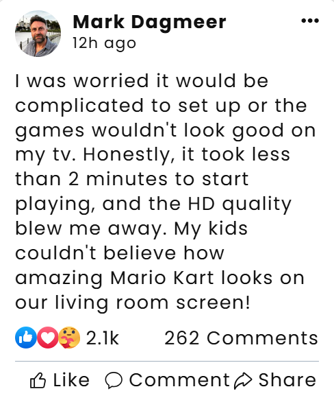 Watching my son enjoy Mario Kart, PKMN, Crash, and so many more of my favorite games is absolutely priceless. I thought the graphics might not hold up, but I was blown away—they’re amazing! This has been such a nostalgic and fun experience for both of us.