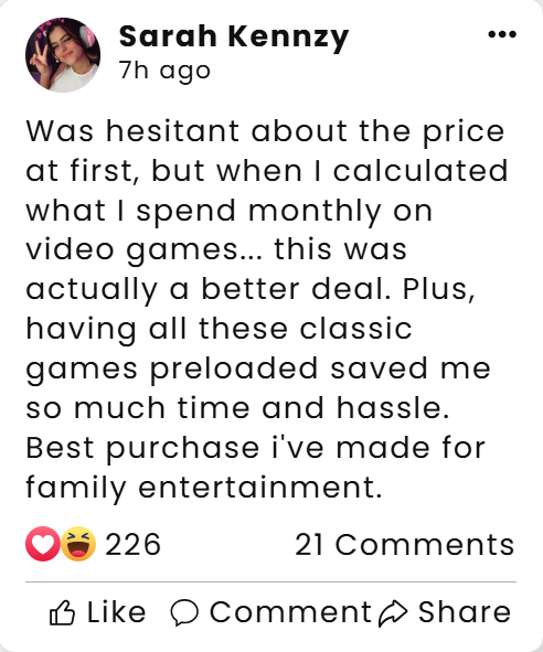 Playing N64, Sega, and PS1 with friends after class was our thing back in the day. Life pulled us apart, but this console brought us back together. I've seen them more in a month than in years—thanks for helping us relive some of those incredible times!